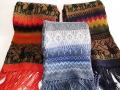 ブルーのマフラーは幾何学柄、赤と紺のマフラーは、アンデスらしいリャマと幾何学柄です。