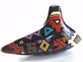 ペルーらしいインカ柄のスタンダードな舟型、自立タイプのオカリナです。